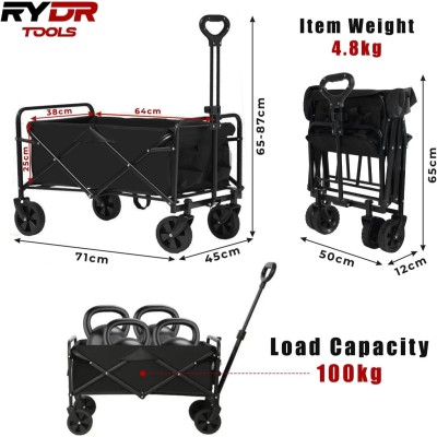 RYDR Foldable Collapsible Camping Outdoor Garden Trolley Cart Wagon Truck Wheelbarrow - 100 kg Weight Capacity grocery